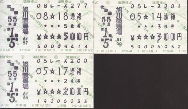 昭和55年 旭川競馬場 勝馬投票券 3枚セット